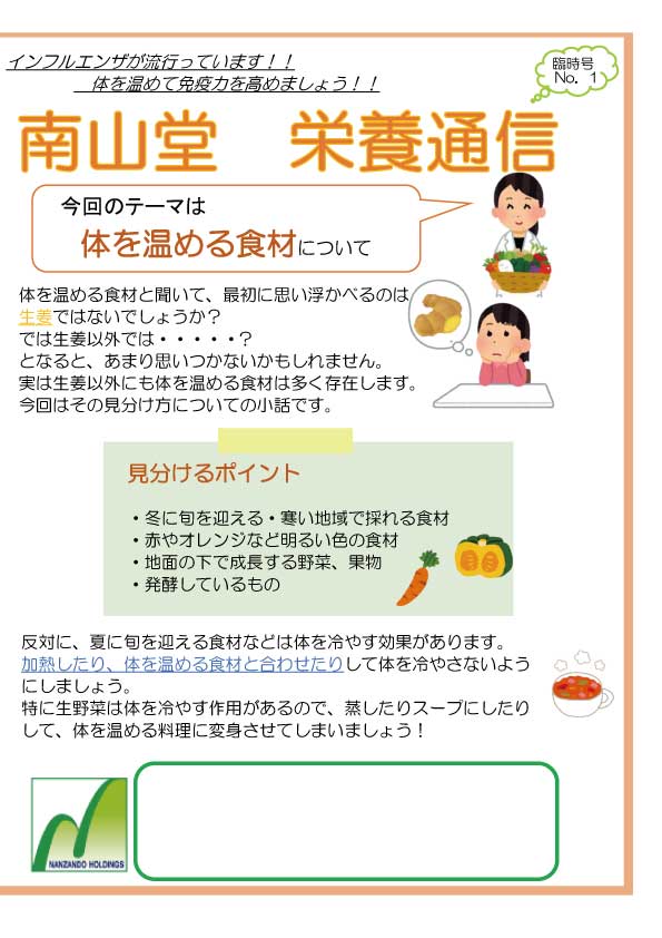 【栄養通信臨時号12】を掲載しました。今回のテーマは「簡単 正月太り改善レシピ」です。