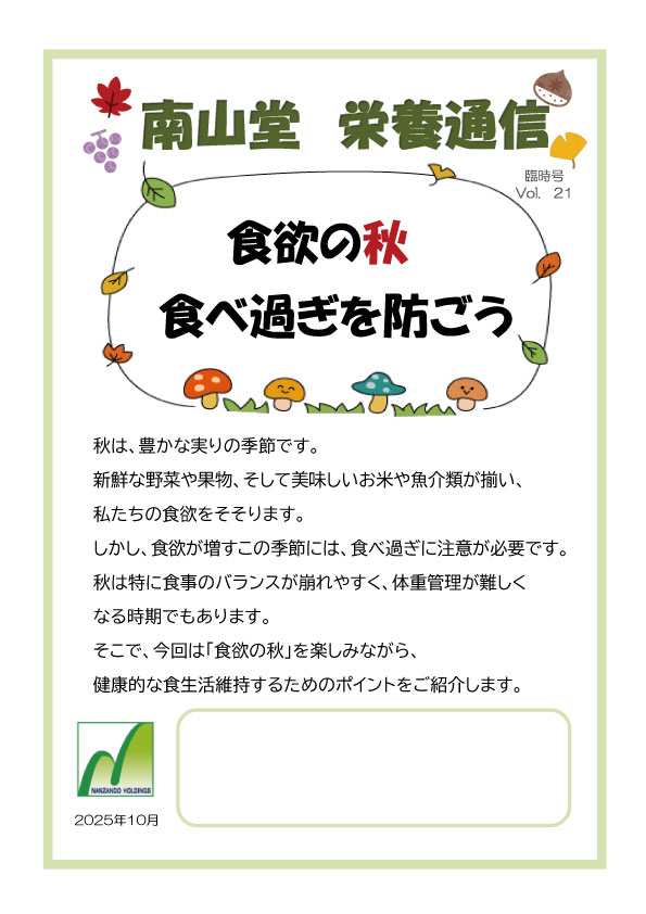 栄養通信臨時号No.21 食欲の秋 食べ過ぎを防ごう